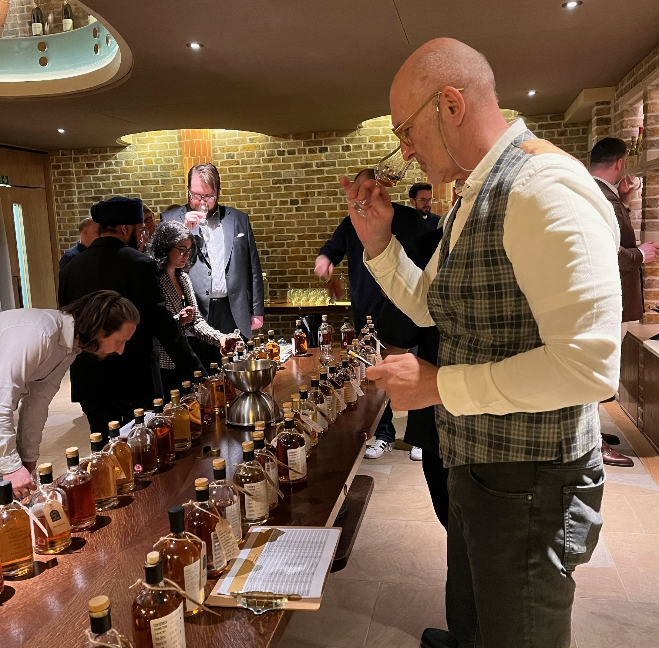 Wir waren natürlich sehr gespannt auf das "Whisky-Schaufenster". Das erste Mal, dass wir mit der Absicht unterwegs waren, ein oder zwei Fässer Whisky zu kaufen. Die Gastlichkeit bei BB&R war herausragend. Tief in den Katakomben der historischen Gebäude durften wir gemeinsam mit 45 anderen Händlern und Importeuren aus weit über 100 Samples unsere Favoriten heraussuchen - und kaufen. Eine gewisse Strategie war schon von Nöten, um mit Fass-Tabelle und Glas bewaffnet auch erfolgreich zu sein, denn wer sich zuerst entscheidet, dem gehört das Fass! Bei uns wurden es zwei Oktav-Fässchen, ein Royal Brackla und ein Ruadh Mor - auf der Liste angekreuzt, auch recht schnell im großen Rund die Samples gefunden, probiert, für sehr gut befunden und voila, unsere ersten eigenen Casks!